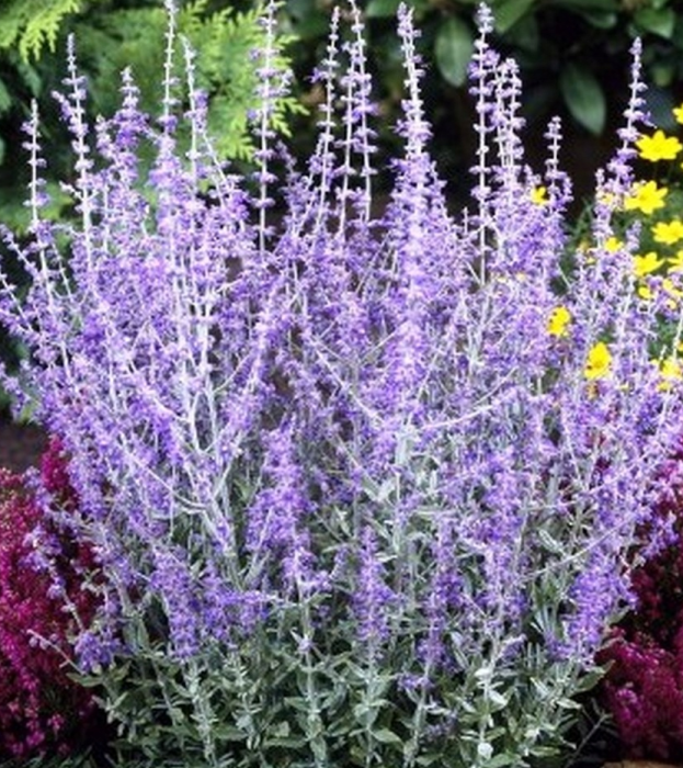 Nieduży krzew o niebieskich kwiatach i srebrzystozielonych pędach, Wyglądem przypomina lawendę, kwitnie tuż po niej, dzięki czemu możemy dłużej cieszyć się kolorami i zapachem. Podobnie jak lawenda pachnie bardzo intensywnie, lecz zapachem przypomina bardziej szałwię. Roślina miododajna!